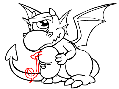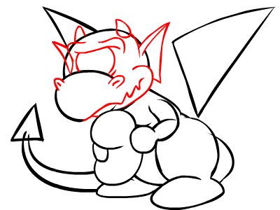 Next, begin drawing the Cyodrake's face. Remember to include its small horns and large, pointed ears.