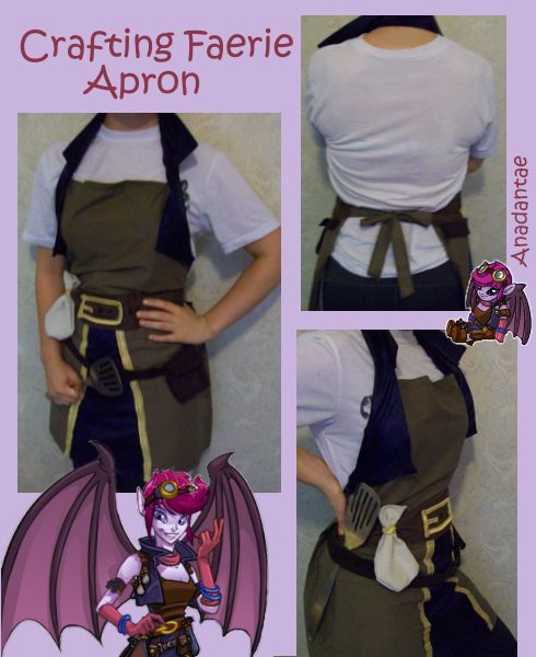 Delina Apron by anadantae Inspired by Neopia's very own "good dark faerie" paradox, Delina, I crafted this apron using sewing skills and fabric paint. The bags were constructed to hold anything from Space Spice to Charcoal Jelly beans, while the belt has an extra loop for a Spatula of Wondrous Cooking. Now if you'll excuse me, I'm off to try my hand at Grilled Ummagine Slushie!